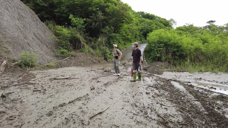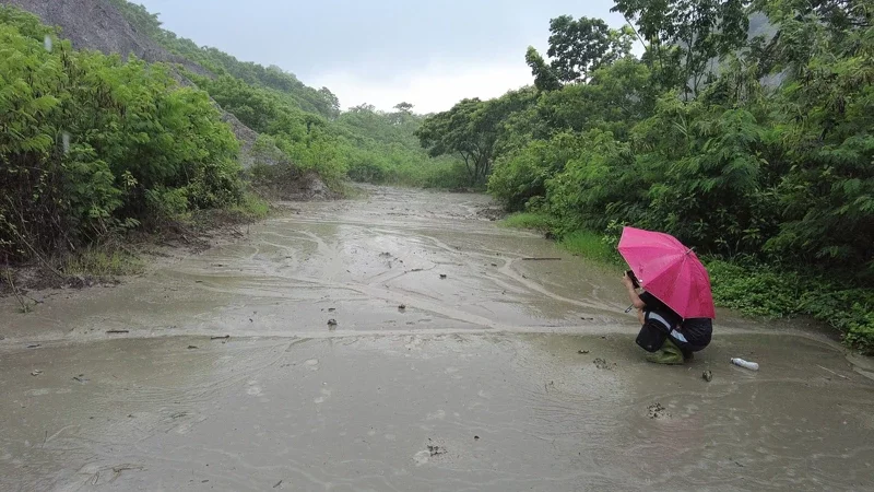 台南社大志工上月底大雨,到龍崎牛埔惡地觀察豪大雨對年岩惡地的影響。圖/台南社大提供
