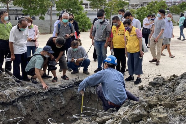 時代力量台南黨部主任洪國峰表示,今天現場開挖約3公尺深大洞,可發現水泥鋪面下是疑似一般土層,再來灰色的疑似為爐石粉,而地下岩層一直有地下水滲出。